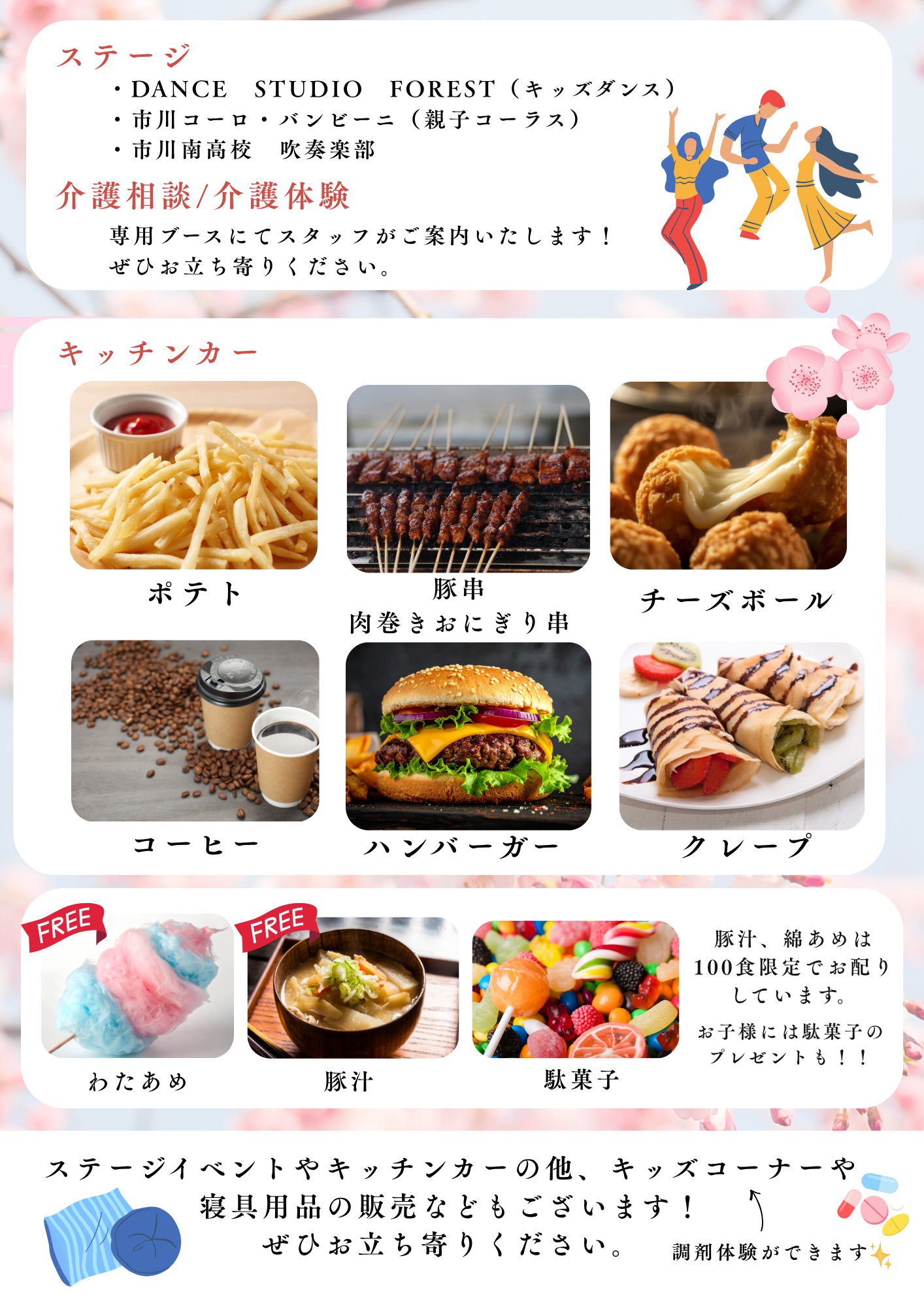 たしました。施設内の桜をご覧いただきながら、キッチンカーや